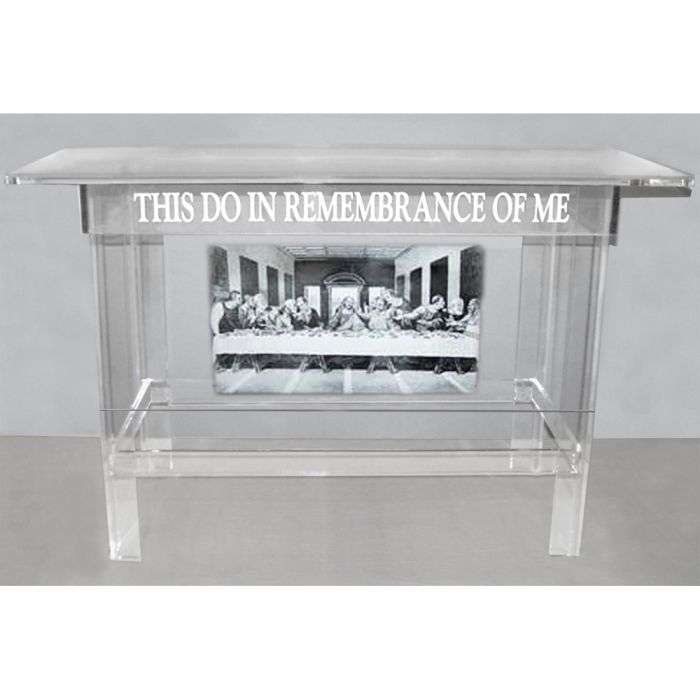 This Acrylic Communion Table includes an imprinted image of the Last Supper on the front!