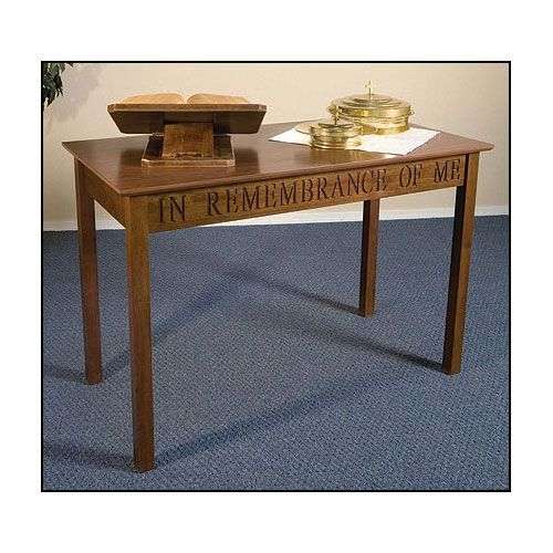 The maple wood is durable and easy to care for. The communion table has “In Remembrance of Me” engraved across the front.