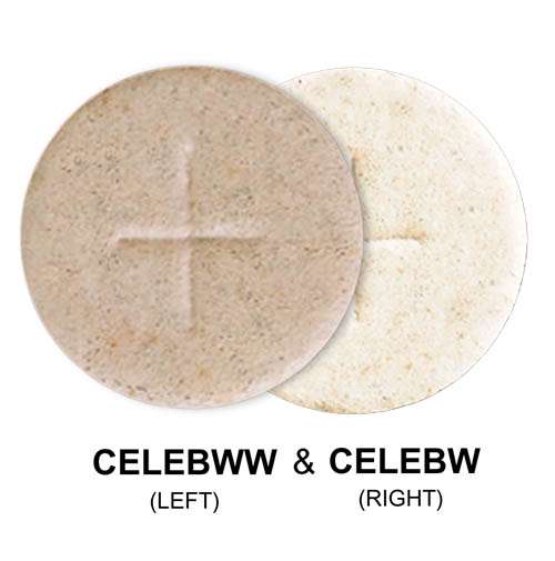 Wafers are available in white and whole wheat and in sizes of 1 1/8″ and 1 3/8″ in diameter and are beautifully and securely packaged in boxes of 1000. Celebrant’s Hosts are boxed in quantities of 50, and the unleavened Communion breads are sold in packages of 25. If this is your first purchase of the individual wafers from us, we suggest purchasing the cannisters. This will give you a crush-proof, resealable container to keep your future purchases safely stored.